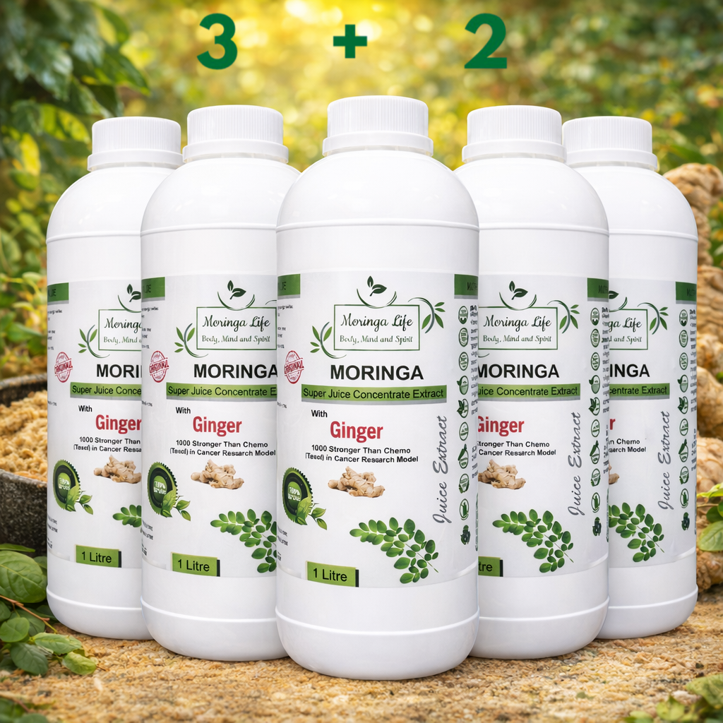 Our Moringa Concentrate Extract with Ginger brings together two of nature’s most potent healing plants to support digestion, immunity, circulation, and natural inflammation relief.