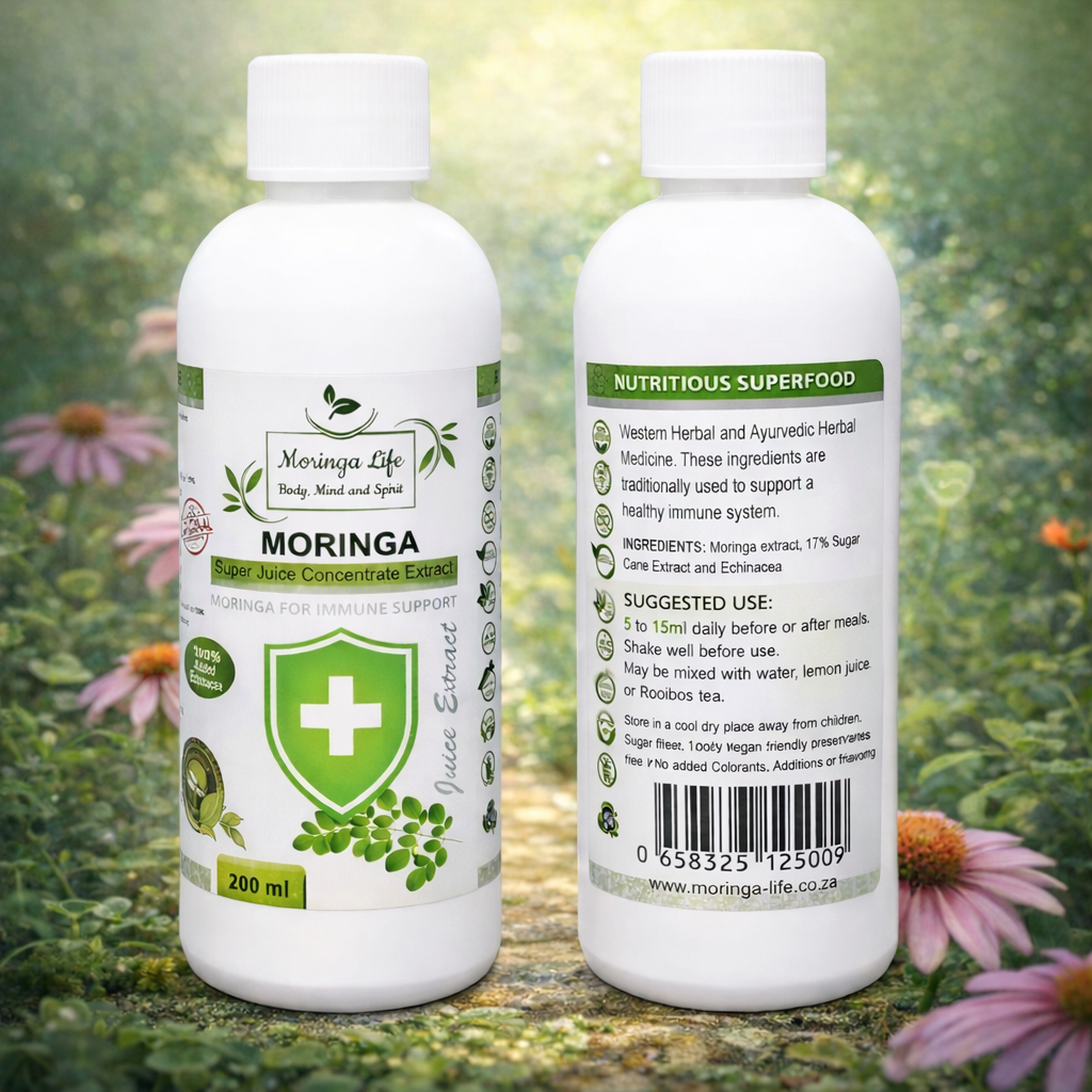 Moringa Concentrate Extract with added Echinacea is a powerful combination designed to support your immune system. Moringa, a superfood known for its high levels of vitamins, minerals, and antioxidants, works in conjunction with immune-boosting Echinacea to keep your body strong and healthy. This supplement is the perfect addition to your daily routine to help protect against illness and maintain overall wellness.